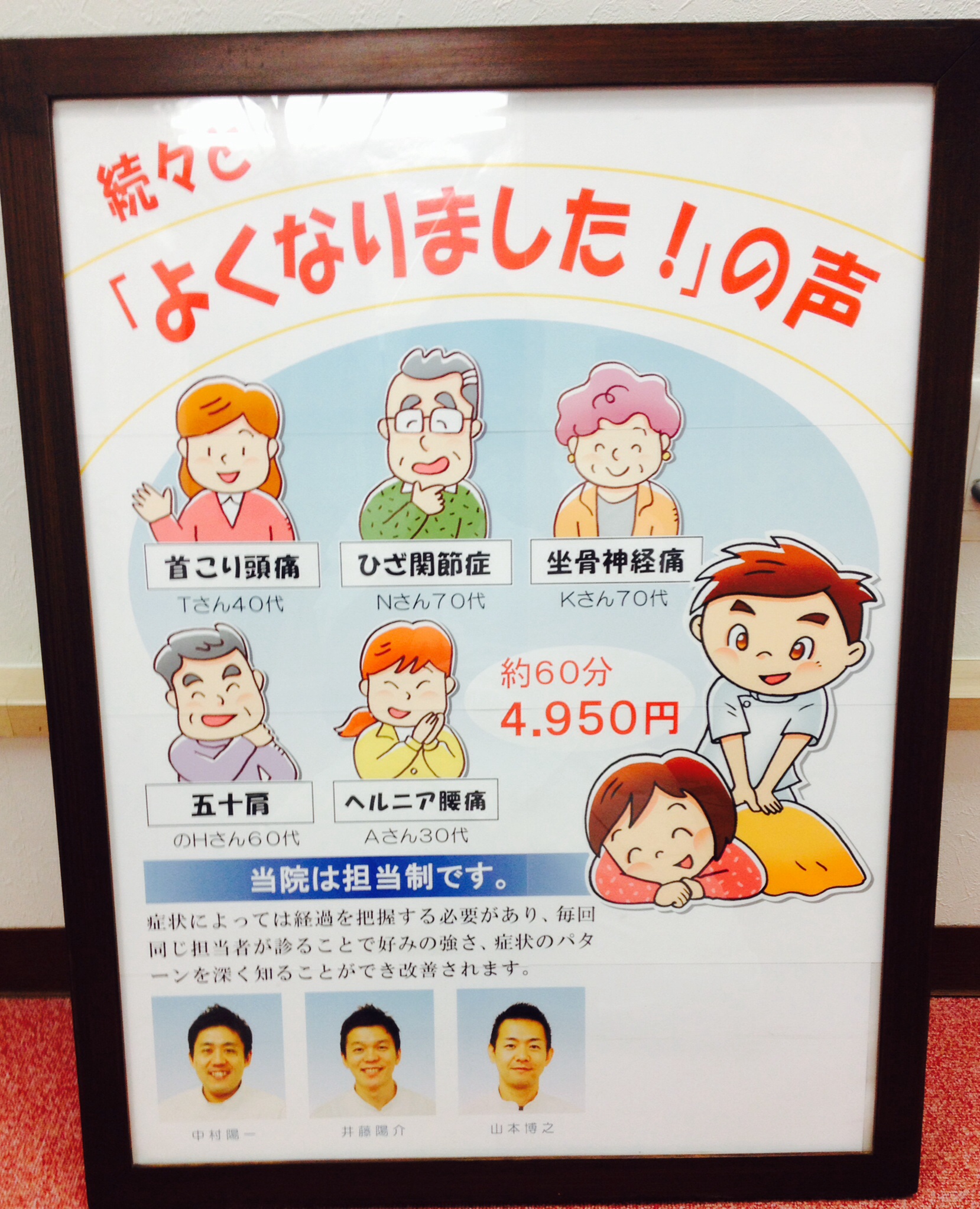 定期的に更新しています。スタッフ山本の力作です。ちなみに画面右の施術をしているキャラクターは「らくくん」といいます!