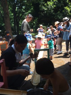 先日は流しそうめんをやるということで飛び入り参加しました。娘は流しそうめんが初めてな割には、当たり前のように食べています。