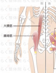 腹側から股関節に付着するこの筋肉は、股関節を曲げたりする時によく使われ、腰を腹側から支える大事な筋肉です。